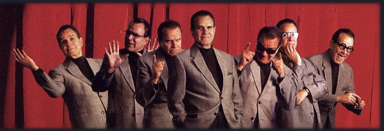 Some of his favorite current stars are Arnold Schwarzenegger, Sylvester Stallone, Jack Nicholson, and Clint Eastwood. "They're easy to do," he says. "They are larger than life." Little says,"an impression is what you think a person sounds like. It could be an exaggeration or a cartoon. It's your impression. I think of an impersonation as more of an exact copy. Knowing the person personally is not important; it's knowing the speech patterns and mannerisms [in order] to imitate the person the way the public sees him." It took him seven years to perfect Frank Sinatra, but only several minutes to mimic Dr. Ruth. The son of a doctor in Ottawa, Canada, Rich started his "career" at the age of 12 when he answered back to his teachers in their own voices. Observing the teachers in action was infinitely more fun than paying attention to class work. To get dates, he'd find out the girl's favorite actor, then call her up imitating that actor's voice. Then when Rich showed up, he'd say, "Sorry, Cary can't make it." Rich's first appearances were in a small club in Canada. "I got booked into this place in Quebec, and when I started my act, I discovered that no one in the audience understood English. It was strictly a French-speaking audience." He figured he was dead until an inspiration hit him. "I did walks . . . Jack Benny's walk, Bob Hope's walk, John Wayne's walk. They all walk the same in French as in English," he recalls. While working as a disc jockey and talk show host, for one April Fools Day marathon he had "Jimmy Durante" emcee the morning show; "James Mason" was a rock 'n' roll deejay; and "Elvis Presley" hosted an afternoon program. Like the infamous 1939 broadcast of "War of the Worlds," 500 autograph-hungry Elvis-believing fans besieged the station, thinking the King was really there. While still in his early 20's, Little was "discovered" in the United States. His friend, singer Mel Torme, then on the musical team of CBS' The Judy Garland Show, asked him to make a tape. Instead of the usual impressions, he did Fred MacMurray, Dana Andrews, James Mason and Van Heflin,"the kinds of people nobody did." Garland thought it was "great" and Little was signed for the show. Appearances on TV variety shows starring Ed Sullivan, Jackie Gleason, Glen Campbell, and Dean Martin followed, as well as on such series as Laugh-In, The John Davidson Summer Show, and The Julie Andrews Show. Little had his own variety show in the 70's. He also was an early guest host on that TV staple, The Tonight Show, hosting 12 times. He was the star of the TV show KopyKats. Rich Little became a household name sitting in one of the Hollywood Squares and has also appeared on the Oak Ridge Boys Variety Special. He was named "Comedy Star of the Year" by the American Guild of Variety Artists. The perpetrator of nine comedy albums and three HBO comedy specials, Rich Little's Christmas Carol with "W.C. Fields" as Scrooge, "Humphrey Bogart" as one of the ghosts and "Paul Lynde" as Bob Cratchit won an Emmy, among other awards. His latest appearance on HBO was as Johnny Carson in the movie The Late Shift, which dealt with the race to succeed Carson on The Tonight Show. Little has appeared on the daytime soaps The Young and the Restless and Santa Barbara. He has made dramatic guest shots on Fantasy Island, Chips, Murder She Wrote, Hawaii Five-O, MacGyver, Police Woman, and Mannix. In a GQ fashion spread, Little was pictured as Richard Nixon, Jack Nicholson, Cary Grant, George Burns, Ronald Reagan and Humphrey Bogart. In an Oscar pre-cast of ABC's Primetime (with Diane Sawyer and Sam Donaldson) he spoofed classic movies, proposing how they would end with different casts, starring Little as "Bette Midler" as Scarlett O'Hara and "Arnold Schwarzenegger" as Hamlet. Little's expert impressions have also been used seriously, as when he stepped in for stars who were unable to do their own redubbings on soundtracks. David Niven's vocal cords were gone due to illness in his last film, Curse of the Pink Panther. Peter Sellers himself was gone by the end of The Trail of the Pink Panther. Little provided both voices for these films. The TV series Mickey Spillane's Mike Hammer needed voice-over narrations on three shows, but star Stacey Keach was unable to finish them. Rich Little was called in to finish the job. He also did Gene Kelly for a Christmas special when Kelly lost his voice. His greatest fear? A sore throat. "Other people get a cold, and they just get a cold. I get a cold and John Wayne gets a cold, Orson Welles gets a cold, Nixon gets a cold, Truman Capote gets a cold. No correction, Truman gets the sniffles. I get a cold and it's all over." Over the years Rich Little has been active with children's charities and he was co-host of the Canadian division of the Children's Miracle Network. He was inducted into the Miami Children's Hospital International Pediatrics Hall of Fame for his tireless efforts in fundraising on behalf of children. In June of 1998 Rich Little added his star to the Canadian Walk of Fame to go along with his current star on the Hollywood Walk of Fame. Though still a Canadian citizen, Rich lives in Las Vegas with his wife Marie. He has two daughters, who ride horses and cheerlead full-time. (And, oh yeah, don't forget about the two cats!) |